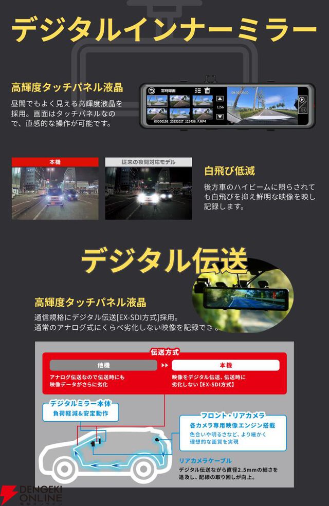 前後2カメラのドライブレコーダー『NV-8000M』が人気に。大型センサー採用の暗視記録や40段階後方ズームなど、機能満載で使いやすい!