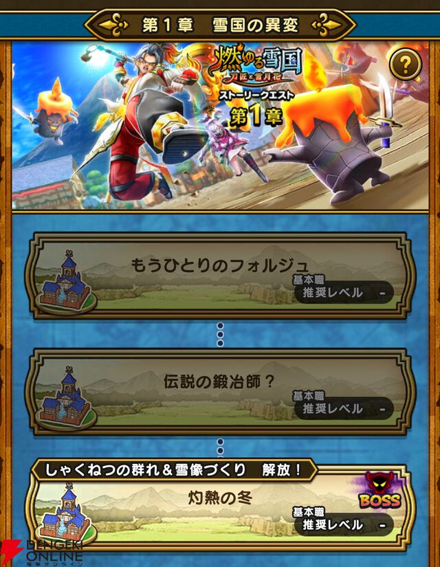 『ドラクエウォーク』新武器・ヘパイトスの烈鎚が実装! 新イベント“燃ゆる雪国~刀匠と雪月花”第1章開催。異界の捕食者、デュラン、シャドーサタンも復刻登場中