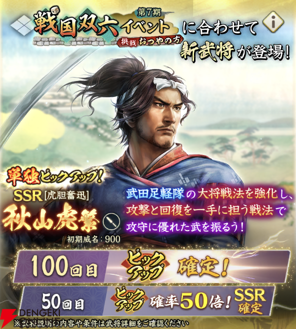 『信長の野望 出陣』攻略:新SSR武将【虎胆奮迅】秋山虎繁の性能解説。固有特性で戦法範囲を拡大させるサポーター【日記#263】