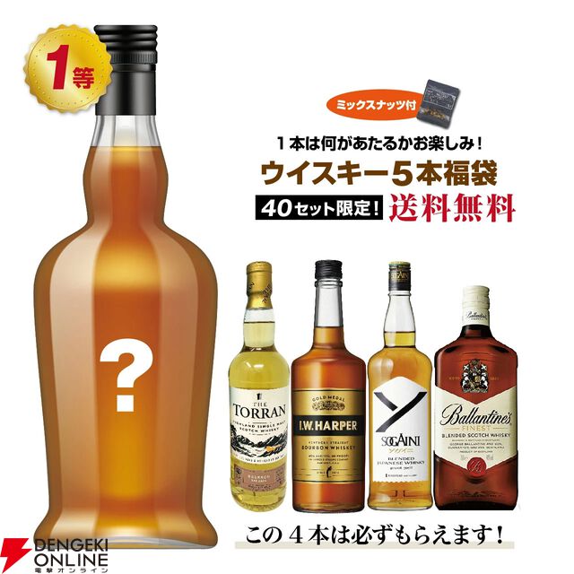 16,800円でマッカラン12年シェリーオーク、イチローズモルトリミテッド、竹鶴などを含む5本セットのウイスキー福袋くじが販売中