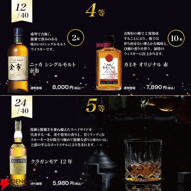 16,800円でマッカラン12年シェリーオーク、イチローズモルトリミテッド、竹鶴などを含む5本セットのウイスキー福袋くじが販売中