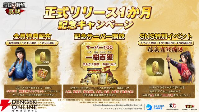 新世代SLG×RPG『信長の野望 真戦』リリース1カ月記念キャンペーンが開催! 小判やスタンプなど全員特典配布&記念サーバーが開放