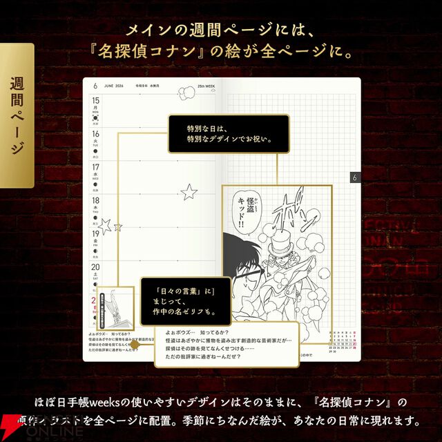 ほぼ日手帳2026『名探偵コナン』デザインが明日2/1より販売開始。表紙は2種類、原作イラストをたっぷり300点以上も使用した特別版!