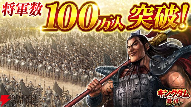 『キングダム 覇道』将軍数(全サーバーのプレイヤーデータ数の累計)100万人突破! 全ユーザーに記念報酬配布中