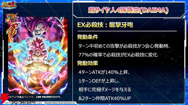 『ドラゴンボールZ ドッカンバトル』11周年第1弾新キャラ“超サイヤ人4孫悟空(DAIMA)”と“超サイヤ人3ベジータ(DAIMA)”が登場。新要素“EX必殺技”が発動可能