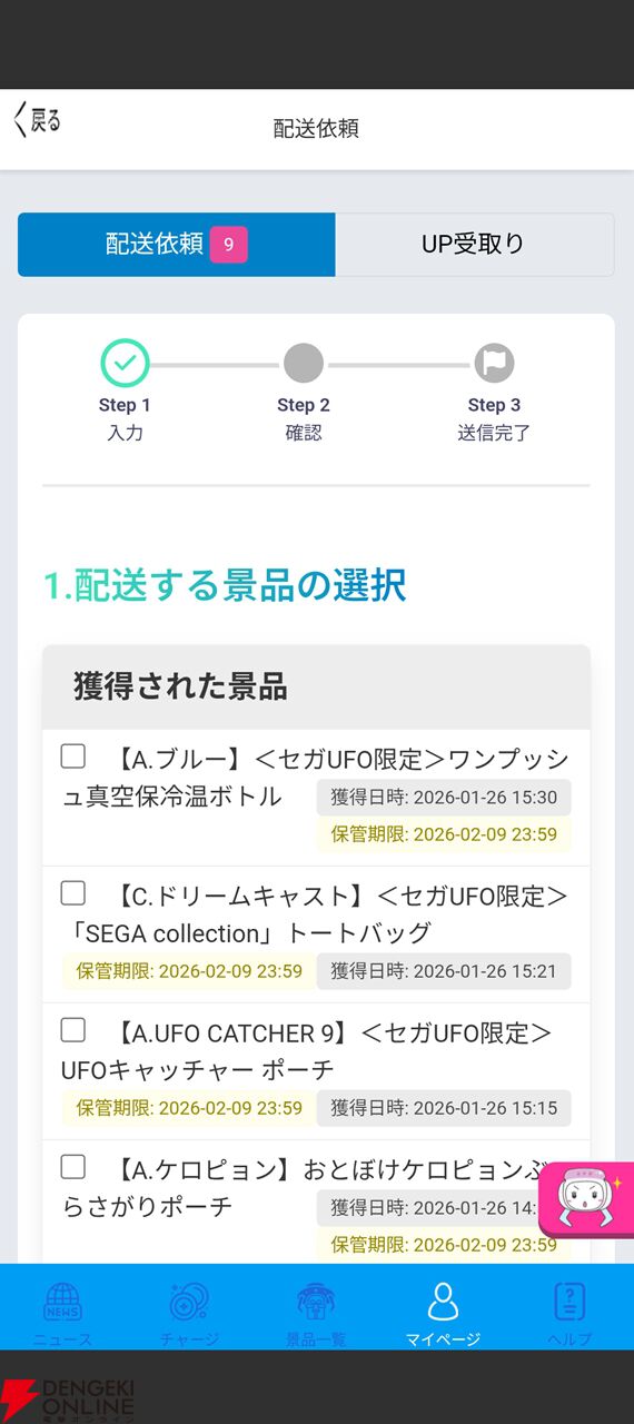 “セガUFOキャッチャーオンライン”が音速配送を実現! 獲得した景品がこんなに早く届くなんて、ゲーセンで獲得するよりラクなのでは?