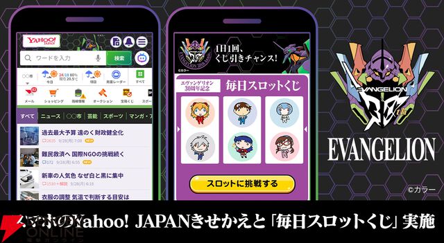 『エヴァンゲリオン』シリーズ30周年を記念したコラボがYahoo! JAPANアプリやZOZOTOWNで開催。着せ替えテーマやコラボアイテム販売など実施