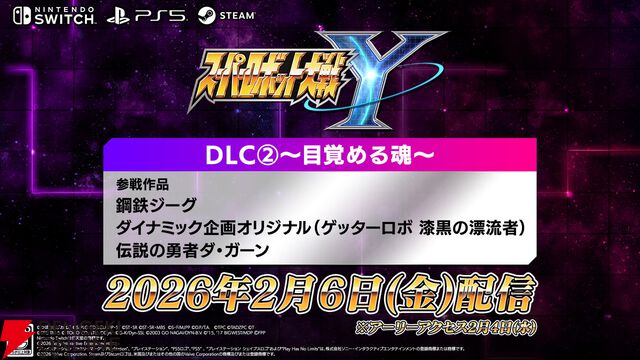 『スパロボY』DLC2の配信が2月6日に決定。『鋼鉄ジーグ』や『伝説の勇者ダ・ガーン』など参戦【スーパーロボット大戦Y】