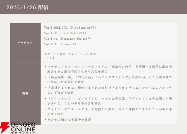 『紅白レスレリ』ソフィーを使うなら忘れずに。特定条件下で進行不可能になる不具合などを修正する最新アップデート配信【レスレリアーナのアトリエ】
