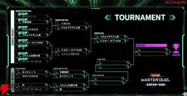 『遊戯王 マスターデュエル』高校生限定大会レポ。優勝はチーム@イグニ☆'S(イチョット選手、チーズ選手)で、決勝はティアラメンツVSライゼオル、ドラゴンテイルVSライゼオルのデッキマッチングに