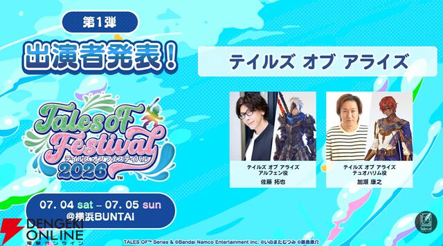 “テイルズ オブ フェスティバル 2026”出演者第1弾が公開。20周年を迎える『ザ テンペスト』よりカイウス役・高城さんとティルキス役・山崎さんが登壇