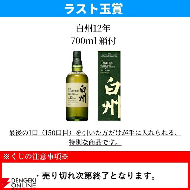 【当たりは70%以上】ラストワンで白州12年が確定。5,610円で山崎・白州NVなども狙える『ウイスキーくじ』が販売中