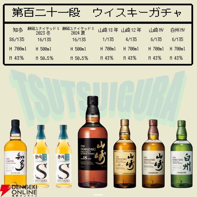 6,980円で山崎18年、山崎12年、山崎NV、白州NV、静岡ユナイテッドS2023冬・2024夏、知多のどれかが届く『ウイスキーくじ』が販売中