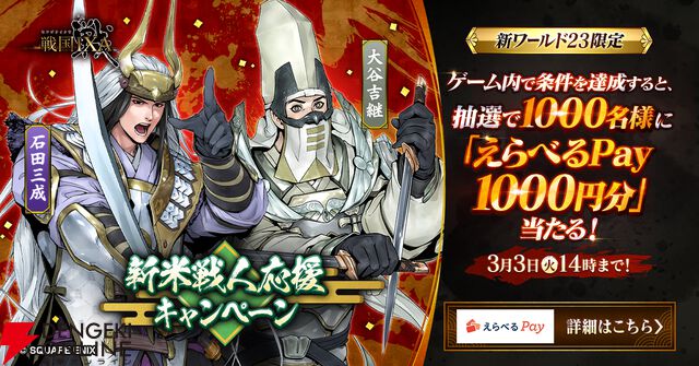 『戦国IXA(イクサ)』2/6より新章開幕! 豊臣秀長や石田三成、大谷吉継など12武将が実装。200回分の無料の金くじや各種キャンペーンも開催中