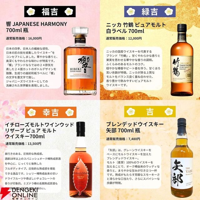 10,980円で響30年を狙える。響21年、山崎12年、山崎NV、響JHなども当たる『超ウイスキーみくじ』が販売中