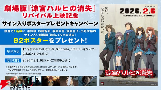劇場版『涼宮ハルヒの消失』リバイバル上映2週目の入場者特典は“復刻フィルムブックマーク”に決定。2010年公開当時に劇場で使用されていた貴重な一品