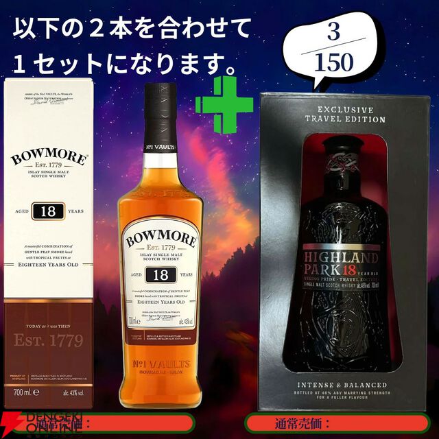 18,880円で山崎12年+白州12年100周年ラベル、ボウモア18年+ハイランドパーク18年トラベル エディションのセットなどを狙える2本セットの『ウイスキーくじ』が販売中