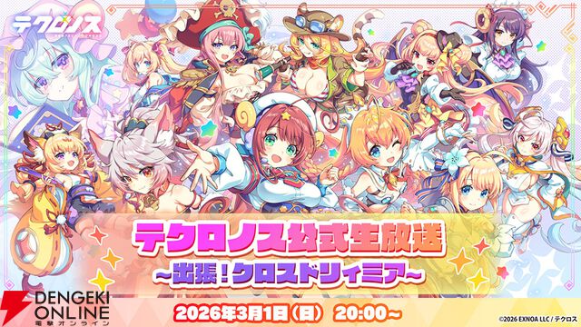 新作RPG『テクロノス』サービス開始。40連分ガチャチケットを全員にプレゼント中。3/1には初の生放送を実施!