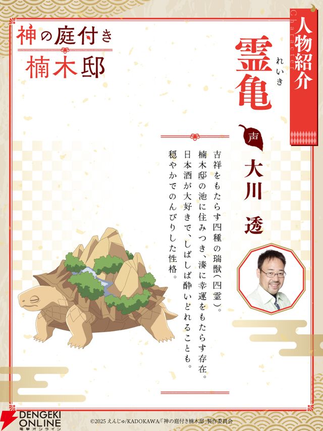 アニメ『神の庭付き楠木邸』神様たちにフォーカスを当てたPV第2弾が公開。四霊役は大川透、遊佐浩二、速水奨、高橋広樹