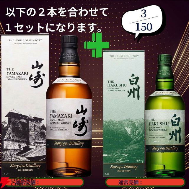 20,880円で山崎18年+山崎12年、白州18年+白州12年、厚岸 立秋+立夏のセットなどが当たる2本セットの『ウイスキーくじ』が販売中