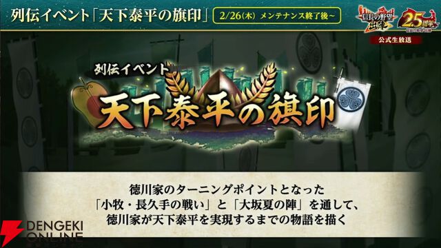 『信長の野望 出陣』2.5周年生放送まとめ:【欣求浄土】徳川家康、【金天衝】井伊直政、【東国一の勇士】本多忠勝が実装。ペッパーランチやJR東日本とのコラボも発表。フレーム・せんとくんにも注目が集まる