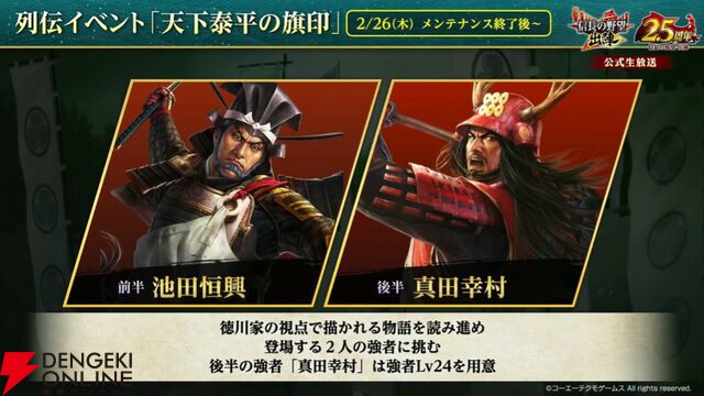 『信長の野望 出陣』2.5周年生放送まとめ:【欣求浄土】徳川家康、【金天衝】井伊直政、【東国一の勇士】本多忠勝が実装。ペッパーランチやJR東日本とのコラボも発表。フレーム・せんとくんにも注目が集まる