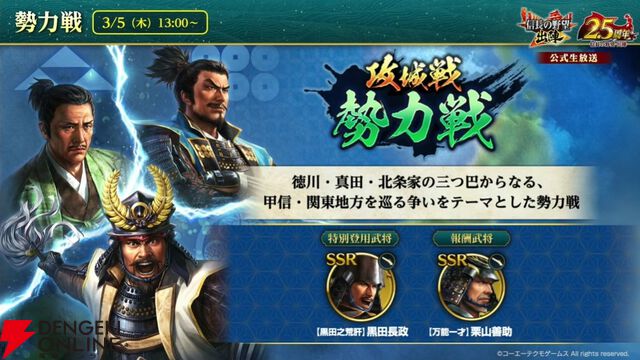 『信長の野望 出陣』2.5周年生放送まとめ:【欣求浄土】徳川家康、【金天衝】井伊直政、【東国一の勇士】本多忠勝が実装。ペッパーランチやJR東日本とのコラボも発表。フレーム・せんとくんにも注目が集まる