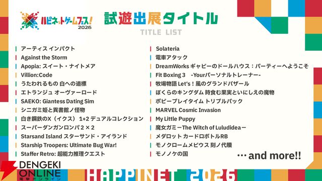 発売前ゲームが無料で遊べるイベント“ハピネットゲームフェス!2026”が3月28日・29日にベルサール秋葉原で開催