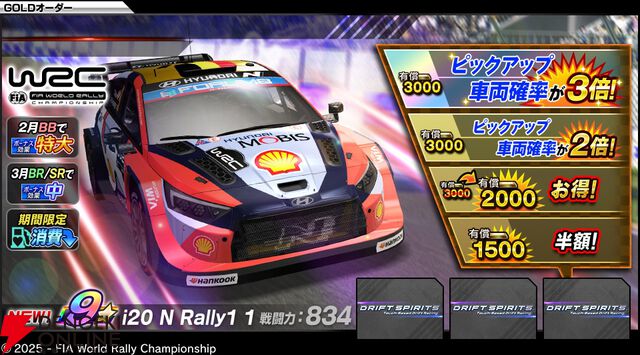 『ドリフトスピリッツ』“WRC”とのコラボ開催。新LEGENDオーダーに《GR YARIS Rally1 33》、《i20 N Rally1 1》などが登場!