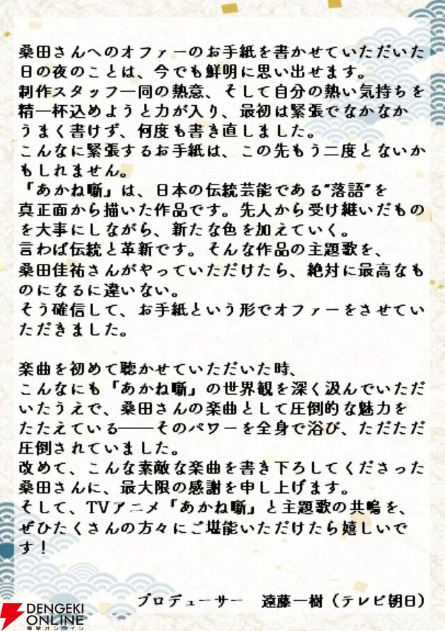 アニメ『あかね噺』OP曲は桑田佳祐が担当。初の完全書き下ろしアニメ主題歌『人誑し/ひとたらし』に決定。馬上鷹将による記念イラスト&本PVも解禁