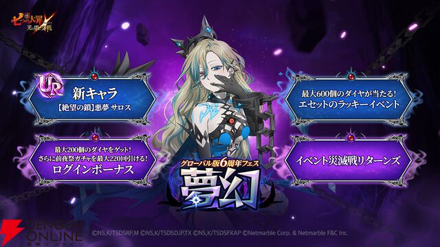 『七つの大罪 グラクロ』新キャラUR【絶望の鎖】悪夢 サロスが登場! グローバル版6周年フェス~夢幻~が本日より開催【七つの大罪~光と闇の交戦~】