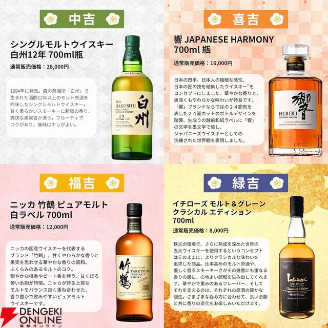 7,777円で竹鶴25年、白州18年、山崎12年などを狙るホワイトデーウイスキー福袋くじが販売中