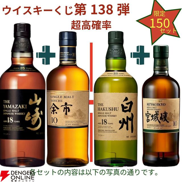 19,880円で山崎18年+余市10年、白州18年+宮城峡10年、厚岸 冬至+啓蟄のセットなどを狙える2本セットの『ウイスキーくじ』が販売中