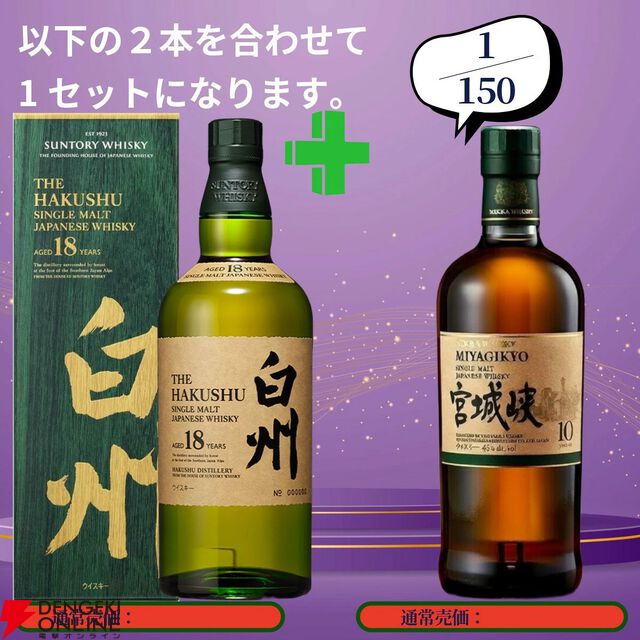 19,880円で山崎18年+余市10年、白州18年+宮城峡10年、厚岸 冬至+啓蟄のセットなどを狙える2本セットの『ウイスキーくじ』が販売中