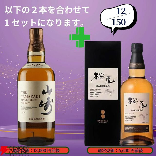 19,880円で山崎18年+余市10年、白州18年+宮城峡10年、厚岸 冬至+啓蟄のセットなどを狙える2本セットの『ウイスキーくじ』が販売中