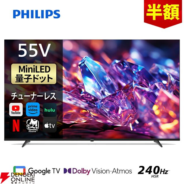 【55型TV半額】フィリップスの55型チューナーレステレビ『55mled800』が8台限定で69,900円で買える。ゲームモードでなめらかな画面を実現【楽天スーパーセール】