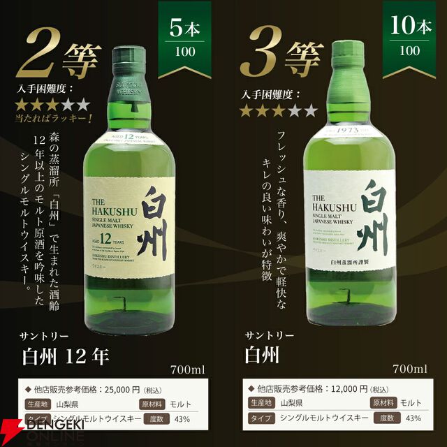 7,700円で白州18年・12年、響JHを狙える『白州18年ウイスキーくじ』第24弾が販売中