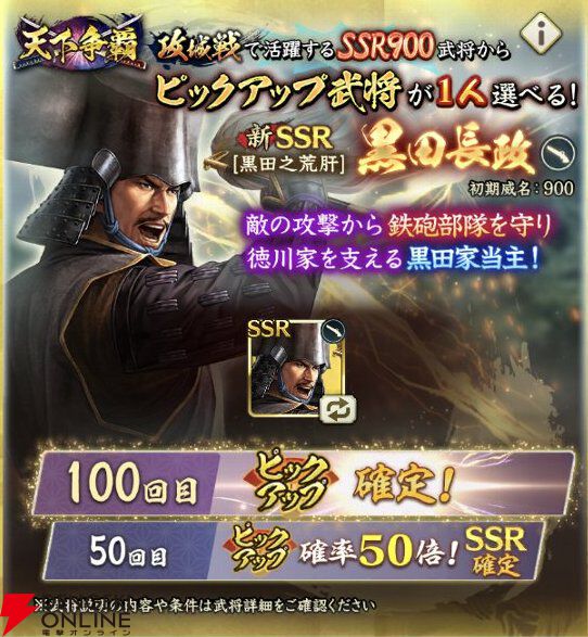 『信長の野望 出陣』攻略:新SSR武将【黒田之荒肝】黒田長政の性能解説。耐久力を大幅に高める徳川&黒田家武将【日記#273】