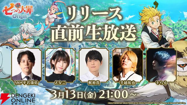 オープンワールドRPG『七つの大罪:Origin』梶裕貴、手越祐也、えなこ、そらるら超豪華ゲストが集結した“リリース直前生放送”が3月13日21時より配信【ナナオリ】