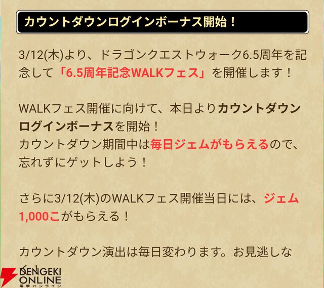 『ドラクエウォーク』3/12より“6.5周年記念WALKフェス”が開催決定。ジェムがもらえるカウントダウンログインボーナスの配布もスタート