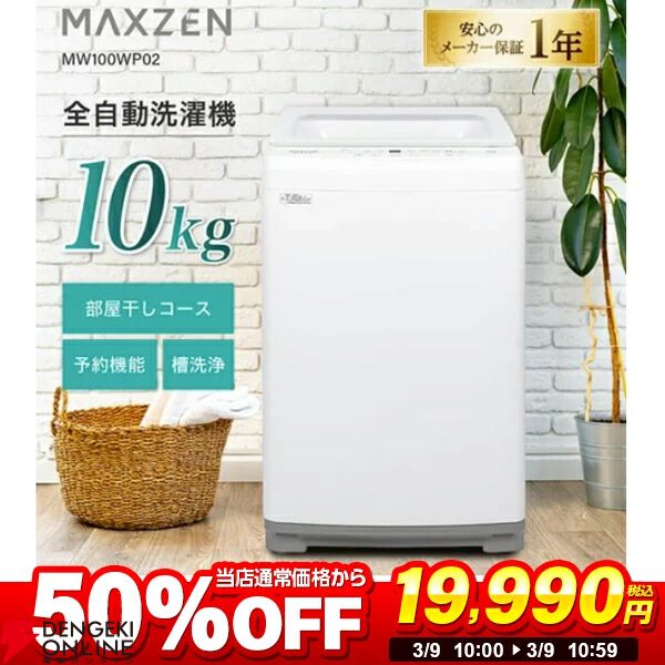 【全自動洗濯機半額】シンプル操作に安心安全設計のMAXZENの縦型全自動洗濯機が2万円を切る価格で登場!《楽天スーパーセール》
