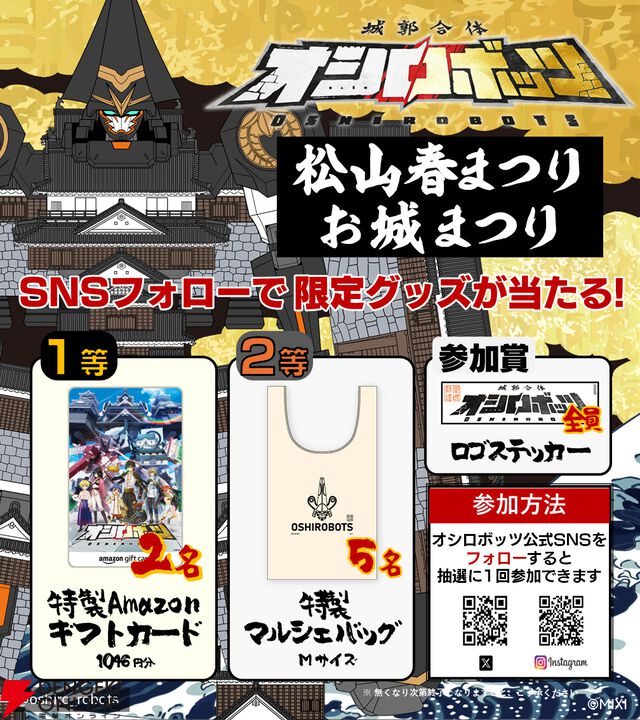 『城郭合体オシロボッツ』オシロボット松山城&オシロボット高知城が同時に参城! 松山春まつりと高知アニクリ祭にブース出展も