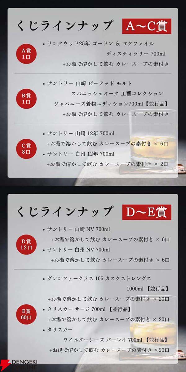 9,980円でリンクウッド25年、山崎スパニッシュオーク工藝コレクション、山崎・白州12年などを狙える『ウイスキーくじ』が販売中