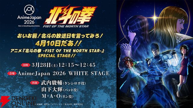 新作アニメ『北斗の拳』4/10 25時より放送・配信開始! 主題歌は[Alexandros]の「Hallelujah」、レイは中村悠一さん、マミヤは青木瑠璃子さん、ナレーションは山寺宏一さんが担当