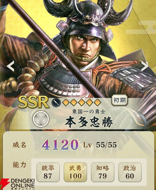 『信長の野望 出陣』攻略:新SSR武将【東国一の勇士】本多忠勝の性能解説。兵数回復&ダメージ無効が強力な威名1000武将【日記#274】