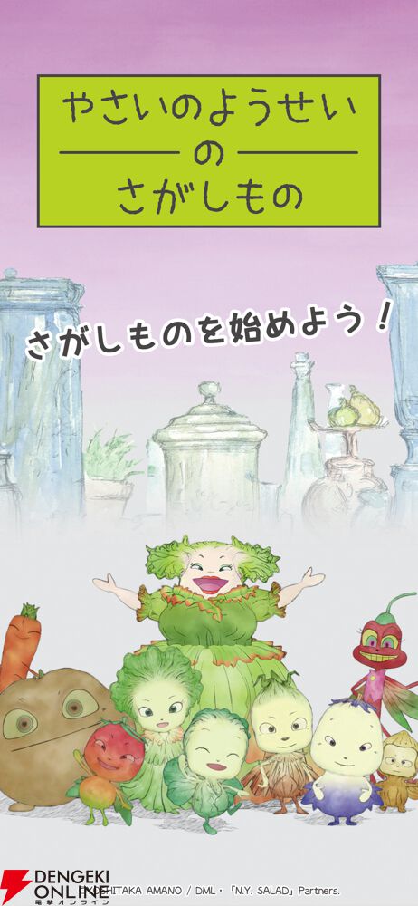 『やさいのようせい』が初のゲームアプリ化。天野喜孝氏デザインのかわいらしい妖精やアイテムを探して楽しむ癒しのひととき