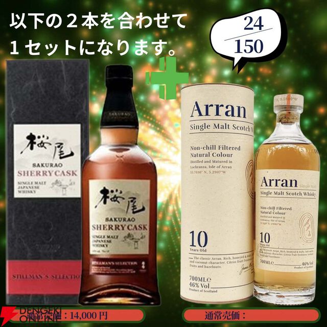 今回は当たりが2倍近くに増量! 21,880円でスプリングバンク18年+山崎12年、スプリングバンク15年+白州12年のセットなどを狙える2本セットの『ウイスキーくじ』が販売中