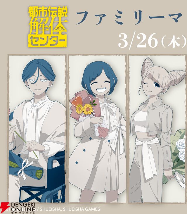 ファミマから『都市伝説解体センター』の缶バッジ&アクスタが登場! 廻屋、あざみ、ジャスミン、山田ガスマスク、松田、如月努がラインナップ