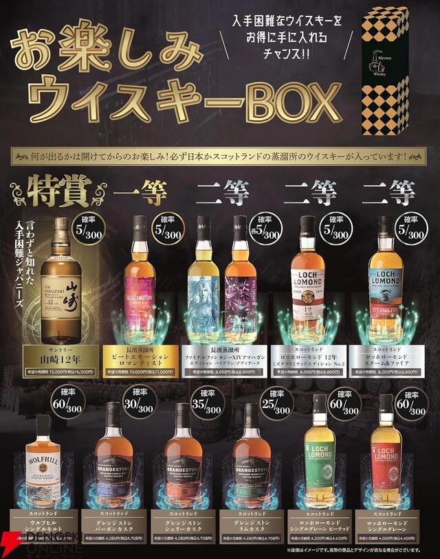 4,850円ほどで山崎12年、布袋寅泰コラボウイスキー、『FF14』コラボウイスキーを狙えるウイスキーくじが販売中