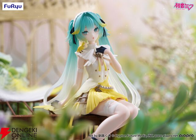 カナリアをイメージした初音ミクのぬーどるストッパーフィギュアが登場。釧路くきさんの描き起こしイラストを再現